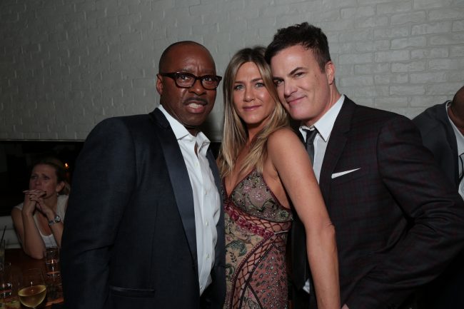 Courtney B. Vance, Jennifer Aniston and Will Speck pose at the after party as Paramount Pictures presents the Los Angeles premiere of “Office Christmas Party” at the Regency Village Theater in Los Angeles, CA on Wednesday, December 7, 2016 ..(Photo: Alex J. Berliner / ABImages)